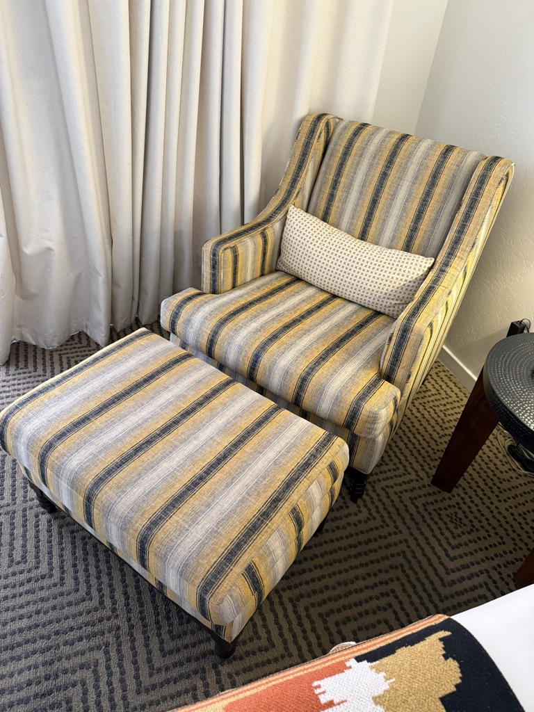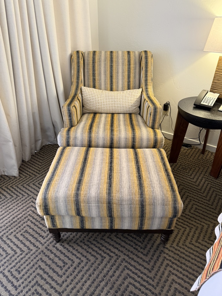 Yellow Striped Armchair W/ Ottoman