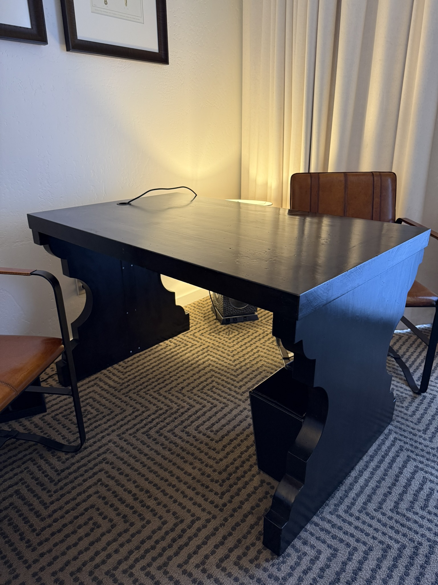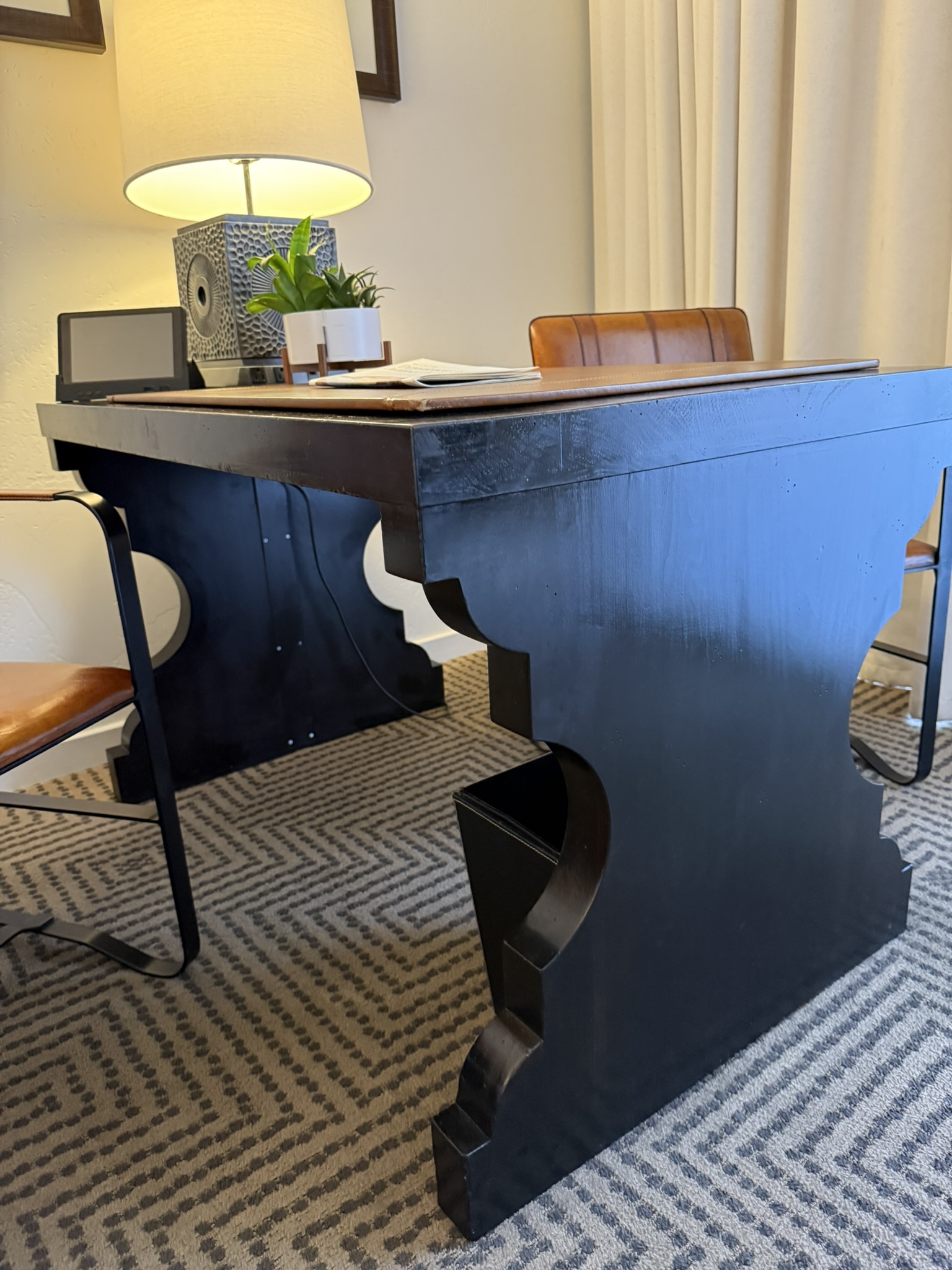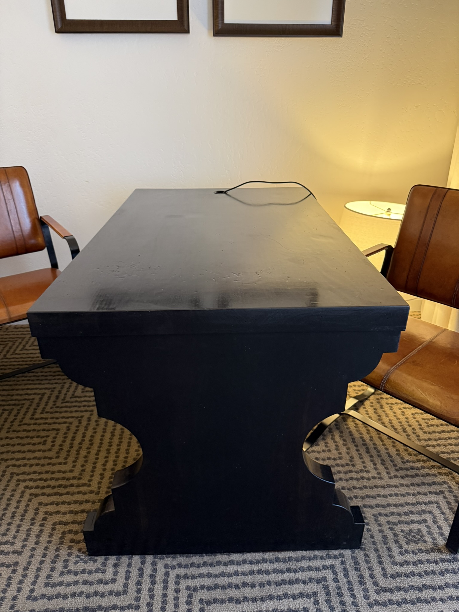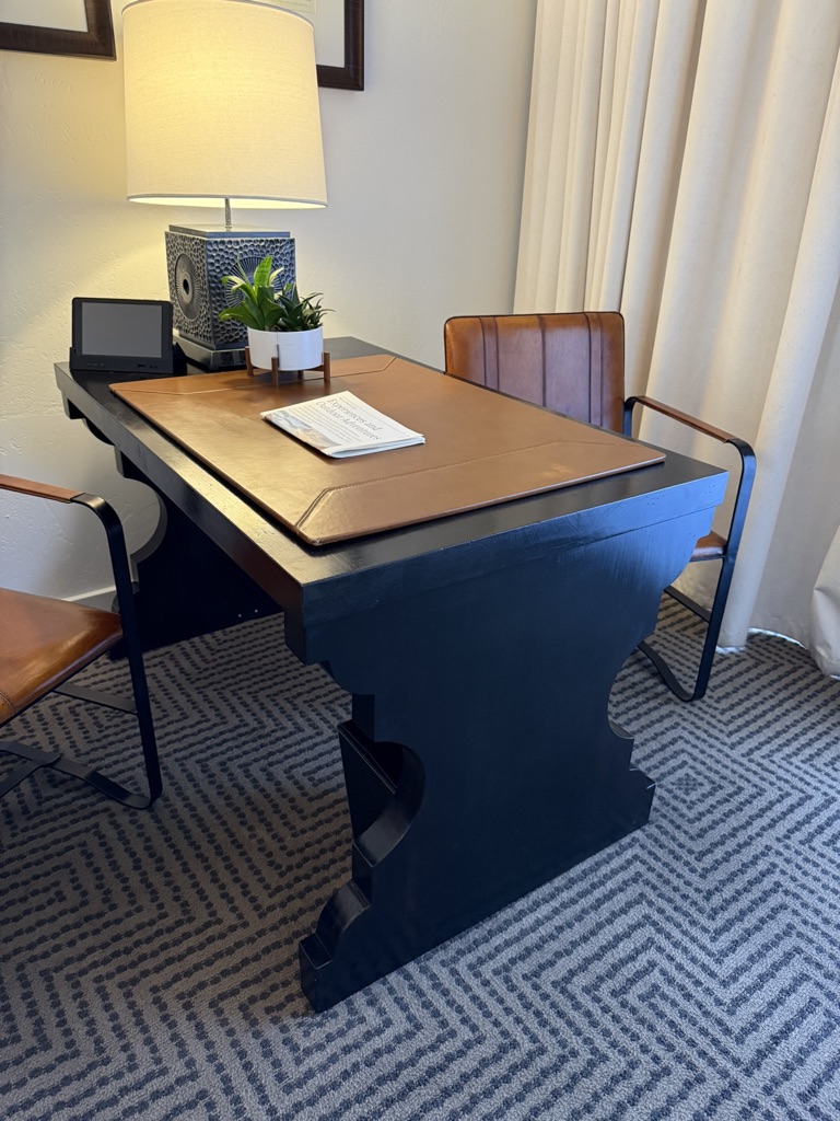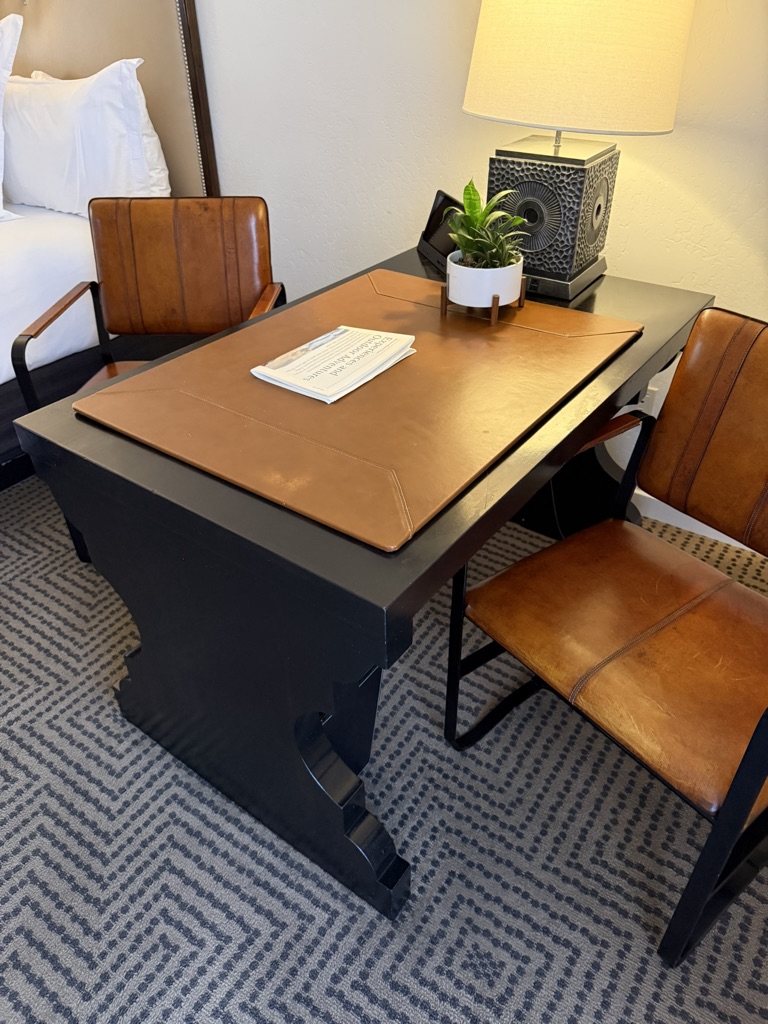 Photos show leather pad which can be placed on desk. Must be requested separately.