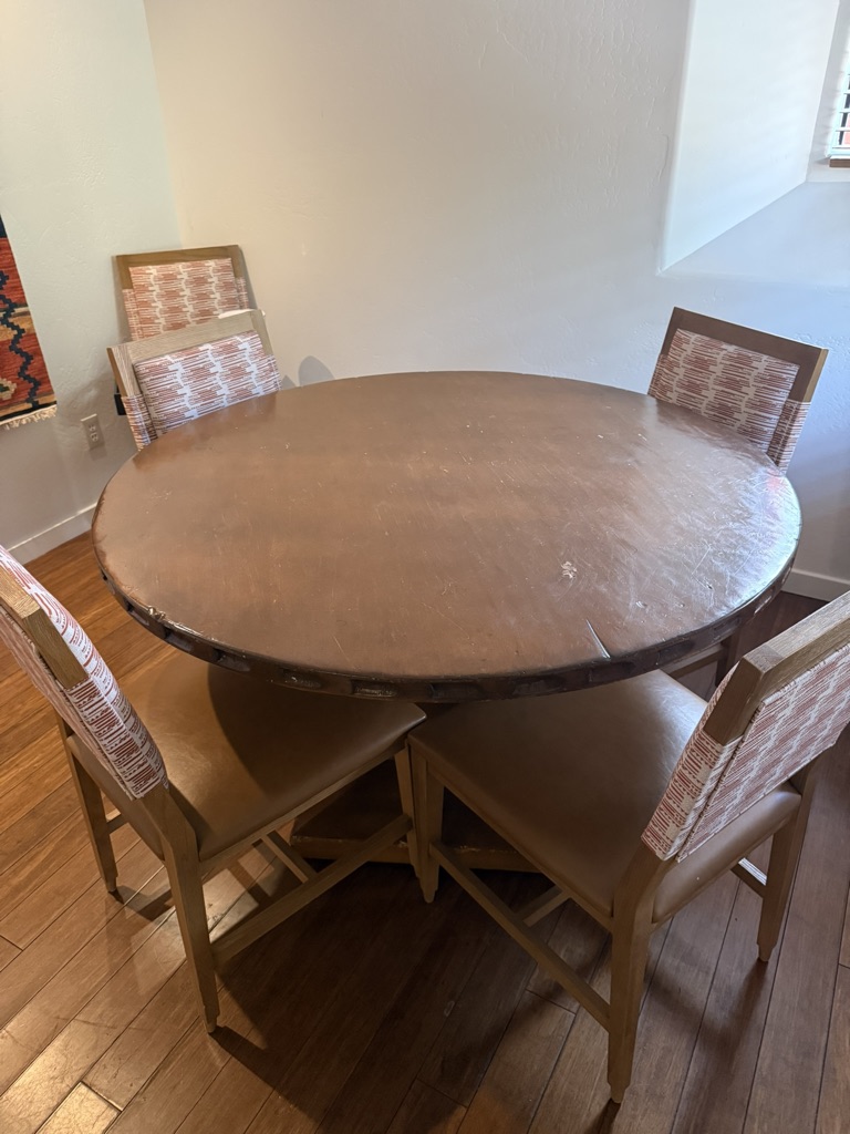 Includes 3 chairs, an end table, and a 31″ wide table